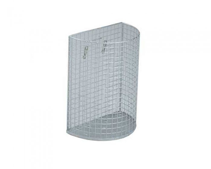 | Bauart | Halbrund aus verzinktem Stahldrahtgewebe, mit gelochten Blechboden, für Wasserablauf. Mit Karabinerhaken zur Befestigung am Zaun. |