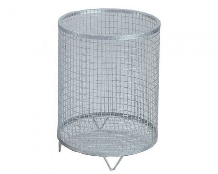 | Bauart | Aus verzinktem 2 mm starken Stahldrahtgewebe mit 4 Füßen aus 8 mm Rundstahl. Boden aus Stahlblech |