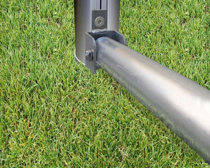 | Material | Klappbarer Bodenrahmen für Fußballtore aus Rundrohr Aluminium Ø 35 mm, für Netztiefe 1,50 m oder 1,00 m |