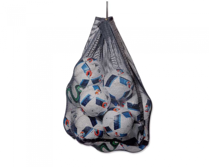| Bauart | Für 13 bis 15 Fußbälle, engmaschiges Polyesternetz mit Zuziehkordel. Farbe schwarz. |