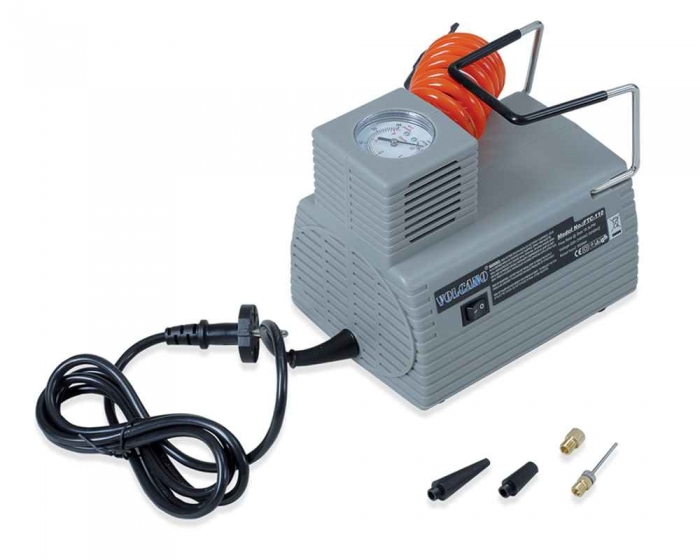 | Ausstattung | Mit einem ca. 1,0 m Spiralschlauch mit KFZ-Hebelstecker. 1 Ballventil und 1 Ballhohlnadel. Die Füllzeit für einen Fußball beträgt ca. 25 Sekunden. |