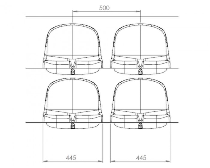| Material | Aus schlagzähen, flammhemmenden, wetterfesten, farbechten und UV-beständigen gespritztem Polypropylen. Schnelle und einfache Montage auf fast jedem Untergrund durch 3-fach Verschraubung. So sitzen die Tribünensitze absolut fest und sicher. Ausführung nach DIN 4102B1 schwerentflammbar auf Anfrage. |