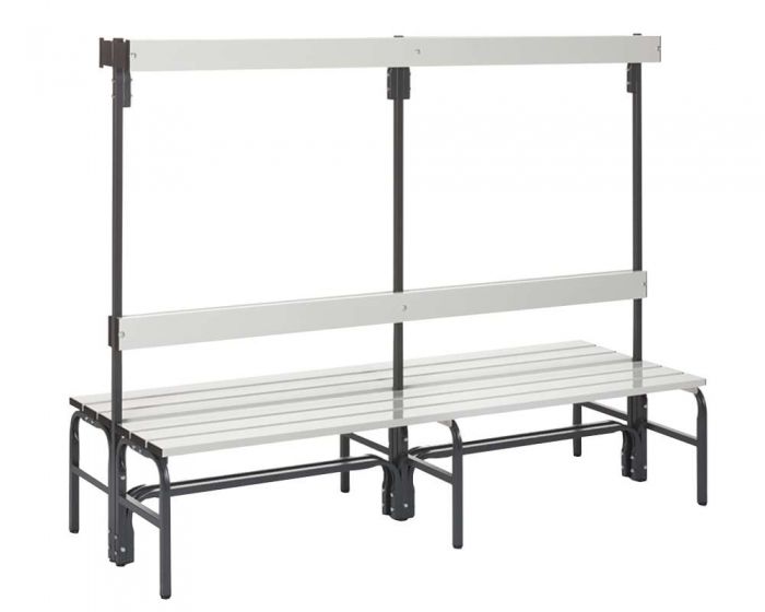 Die Umkleidebank für den Feuchtbereich Sitzfläche Alu doppelseitig mit Rückenlehne